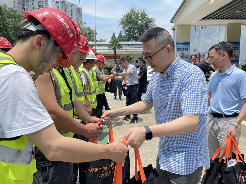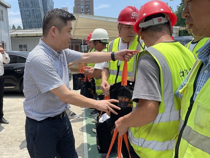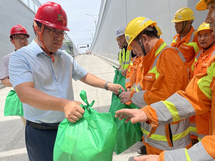 在工程01標(biāo)項(xiàng)目部及北線隧道現(xiàn)場,王曉春處長、莫海崗總經(jīng)理、林凡科副總經(jīng)理親手為一線建設(shè)者送上了包含毛巾、沐浴露、洗手液、清涼飲品等防暑用品的清涼大禮包,感謝他們?yōu)槌鞘薪ㄔO(shè)所做的貢獻(xiàn),叮囑大家一定要注意防暑降溫,科學(xué)安排休息時(shí)間,保障自身安全。